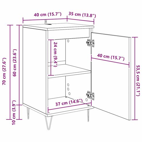vidaXL Sideboard Wandmontiert Altholz 40 x 35 x 70 cm Holzwerkstoff