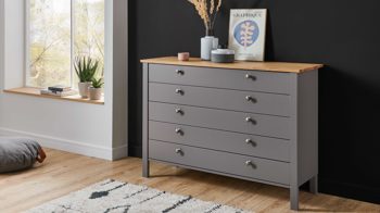 manhattengrauer Lack & Wildeiche - fünf Schubladen, Breite ca. 134 cm