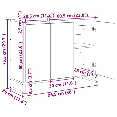 vidaXL Seitenschrank Sonoma 96,5 x 30 x 75 cm Holzwerkstoff
