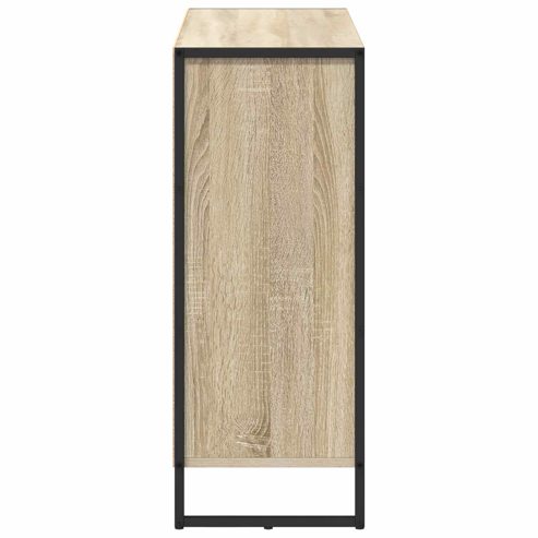 Dieser coole Side Cabinet im industriellen Stil passt super in jeden modernen Wohnraum und bietet sowohl Funktionalität als auch Stil. Hergestellt aus tollem Holzwerkstoff zeigt dieser Schrank handwerkliches Können und verbindet praktische Nutzung mit einem ansprechenden Look, der dazu einlädt, deinen Raum ordentlich zu gestalten. Holzwerkstoff Handwerkskunst Der Schrank ist aus hochwertigem Holzwerkstoff und bietet eine stabile Basis, die toll aussieht und langlebig ist. Die Materialien sorgen dafür, dass der Schrank dem täglichen Gebrauch standhält und dabei chic bleibt. Du kannst dir sicher sein, dass er auch nach Jahren noch gut aussieht und sowohl Funktion als auch Stil verbessert. Industrielles Design Der Schrank hat eine schlanke, rechteckige Form, die moderne industrielle Eleganz verkörpert. Mit seinen neutralen Farben und klaren Linien fügt er sich perfekt in verschiedene Einrichtungsstile ein, von urban bis schlicht. Er ist sowohl ansprechend als auch praktisch und hebt die Stimmung im Raum. Geräumiger Stauraum Der Schrank hat mehrere Fächer, die viel Platz bieten, um deine Essentials zu organisieren. So bleibt dein Raum ordentlich und du hast alles Nötige schnell zur Hand. Egal ob für den Wohnbereich oder dein Unterhaltungssystem, dieses Design konzentriert sich auf Funktionalität und Ordnung. Robuste Konstruktion Der Schrank ist stabil und langlebig, was ein sicheres Gefühl in geschäftigen Haushalten gibt. Seine stabile Bauweise erlaubt es dir, ihn oft umzustellen, ohne dass er beschädigt wird. Benutzer werden das gute Gleichgewicht von Stil und Stabilität zu schätzen wissen, das auf dauerhafte Qualität ausgelegt ist. Nur für den Innenbereich Der Schrank ist perfekt für dein Wohnzimmer und bietet eine harmonische Lösung zur Aufbewahrung drinnen. Seine praktischen Merkmale passen gut zu Innenräumen und sorgen für Komfort, ohne seine Stabilität zu verlieren. Er ist die ideale Wahl, um industriellen Stil in dein Zuhause zu bringen. ** Farbe: Sonoma ** Material: Holzwerkstoff ** Gesamtabmessungen: 96,5 x 30 x 75 cm (L x B x H) ** mit 3 Türen ** Montage erforderlich: Ja ** Lieferumfang: ** 1 x Seitenkasten
