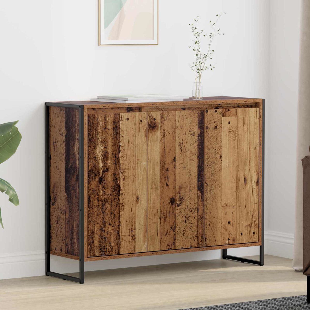 Dieser coole Side Cabinet im industriellen Stil passt super in jeden modernen Wohnraum und bietet sowohl Funktionalität als auch Stil. Hergestellt aus tollem Holzwerkstoff zeigt dieser Schrank handwerkliches Können und verbindet praktische Nutzung mit einem ansprechenden Look, der dazu einlädt, deinen Raum ordentlich zu gestalten. Holzwerkstoff Handwerkskunst Der Schrank ist aus hochwertigem Holzwerkstoff und bietet eine stabile Basis, die toll aussieht und langlebig ist. Die Materialien sorgen dafür, dass der Schrank dem täglichen Gebrauch standhält und dabei chic bleibt. Du kannst dir sicher sein, dass er auch nach Jahren noch gut aussieht und sowohl Funktion als auch Stil verbessert. Industrielles Design Der Schrank hat eine schlanke, rechteckige Form, die moderne industrielle Eleganz verkörpert. Mit seinen neutralen Farben und klaren Linien fügt er sich perfekt in verschiedene Einrichtungsstile ein, von urban bis schlicht. Er ist sowohl ansprechend als auch praktisch und hebt die Stimmung im Raum. Geräumiger Stauraum Der Schrank hat mehrere Fächer, die viel Platz bieten, um deine Essentials zu organisieren. So bleibt dein Raum ordentlich und du hast alles Nötige schnell zur Hand. Egal ob für den Wohnbereich oder dein Unterhaltungssystem, dieses Design konzentriert sich auf Funktionalität und Ordnung. Robuste Konstruktion Der Schrank ist stabil und langlebig, was ein sicheres Gefühl in geschäftigen Haushalten gibt. Seine stabile Bauweise erlaubt es dir, ihn oft umzustellen, ohne dass er beschädigt wird. Benutzer werden das gute Gleichgewicht von Stil und Stabilität zu schätzen wissen, das auf dauerhafte Qualität ausgelegt ist. Nur für den Innenbereich Der Schrank ist perfekt für dein Wohnzimmer und bietet eine harmonische Lösung zur Aufbewahrung drinnen. Seine praktischen Merkmale passen gut zu Innenräumen und sorgen für Komfort, ohne seine Stabilität zu verlieren. Er ist die ideale Wahl, um industriellen Stil in dein Zuhause zu bringen. ** Farbe: Altholz ** Material: Holzwerkstoff ** Gesamtabmessungen: 96,5 x 30 x 75 cm (L x B x H) ** mit 3 Türen ** Montage erforderlich: Ja ** Lieferumfang: ** 1 x Seitenkasten