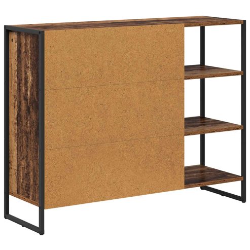 Dieser industrielle Side Cabinet bringt Funktionalität und modernes Design zusammen und ist ein echter Hingucker in jedem Wohnzimmer. Sein rechteckiges Design nutzt den Raum optimal und präsentiert deine liebsten Deko-Objekte elegant. Dieses vielseitige Stück kann mühelos von einer Aufbewahrungslösung zu einem echten Statement-Möbelstück werden, das Gäste mit seiner schlichten Eleganz begeistert. Der Rahmen aus Holzwerkstoff sorgt für Stärke und Stabilität und trägt zum schicken Look des Schranks bei. Er passt perfekt in moderne Wohnräume und bietet ein gutes Gleichgewicht zwischen ansprechendem Aussehen und praktischer Funktionalität. Die solide Konstruktion gewährleistet, dass er langlebig ist und all deine Aufbewahrungsbedürfnisse stylish erfüllt. Stahlbeine erhöhen die Stabilität des Schranks und bieten eine sichere Basis. Diese Beine bringen einen metallischen Akzent zur Holzoberfläche und sind robust genug für den täglichen Gebrauch. Sie unterstützen das Design und machen die Positionierung einfach und stabil. Anpassbare Aufbewahrungsoptionen: Gestalte das Innere ganz nach deinem Bedarf. Die Flexibilität erlaubt es dir, die Regale so zu nutzen, dass sie Bücher und Deko optimal unterbringen. So bleibt der Schrank funktional und sieht weiterhin elegant aus, maßgeschneidert auf deinen persönlichen Stil. Einfacher Montageaufwand: Dieser Side Cabinet ist für eine unkomplizierte Montage ausgelegt und braucht zwei Personen sowie einen Schraubendreher. Der Zusammenbau sorgt für ein stabiles Ergebnis, und du kannst deinen neuen Schrank mit gutem Gefühl nutzen, weil er sicher montiert ist. Nur für den Innenbereich: Passt perfekt in Innenräume und setzt ein zeitloses Stil-Statement für Wohnzimmer und Co. Die Materialien und das Design sind für die Langlebigkeit im Innenbereich gedacht, sodass der Schrank über die Jahre hinweg gut aussieht. ** Farbe: Altholz ** Material: Holzwerkstoff ** Gesamtabmessungen: 96,5 x 30 x 75 cm (L x B x H) ** mit 2 Türen ** Montage erforderlich: Ja ** Lieferumfang: ** 1 x Seitenkasten