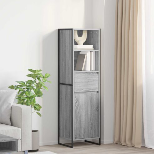 Dieses industrielle Bücherregal verbindet modernen Style mit nützlicher Funktion und ist eine praktische Lösung für dein Wohnzimmer. Aus Holzwerkstoff fertiggestellt, hat es eine schicke rechteckige Form, die sich super in verschiedene Räume einfügt. Die robuste Bauweise mit Stahlbeinen macht das Regal zu einer zuverlässigen Wahl für jeden Haushalt. Es ist vielseitig einsetzbar, perfekt zum Aufbewahren von Büchern, Ausstellen von Deko oder für andere wichtige Dinge, und verleiht deinem Raum einen rustikalen Charme. Holzwerkstoff-Konstruktion: Das Regal besteht aus hochwertigem Holzwerkstoff, der stabil und langlebig ist. Dadurch bleibt es viele Jahre ein echter Hingucker in deinem Zuhause. Stahlbeine für Stabilität: Die robusten Stahlbeine sorgen für Stabilität und sicheren Halt. Diese Materialkombination garantiert eine solide Basis und Langlebigkeit, auch bei schweren Gegenständen auf den Regalen. Geräumige Stauraumkapazität: Das Regal bietet viel Platz für alles Mögliche, von Büchern bis zu Deko. Die vielen Fächer helfen, Ordnung zu halten und deinen Wohnraum sauber zu halten. Visuelle Anziehung und Design: Sein modernes, industrielles Design macht das Regal zu einem tollen Blickfang. Die Kombination aus Holz und Stahl zieht alle Blicke auf sich und passt super zu verschiedenen Einrichtungsstilen. Einfache Montage: Die Montage ist einfach und erfordert zwei Personen und einen Schraubendreher, damit du das Regal schnell nutzen kannst und schnell von den praktischen Vorteilen profitierst. ** Farbe: Graues Sonoma ** Material: Holzwerkstoff ** Gesamtabmessungen: 43 x 36 x 150,5 cm (L x B x H) ** Mit Schublade ** mit 1 Tür ** Montage erforderlich: Ja ** Lieferumfang: ** 1 x Bücherregal