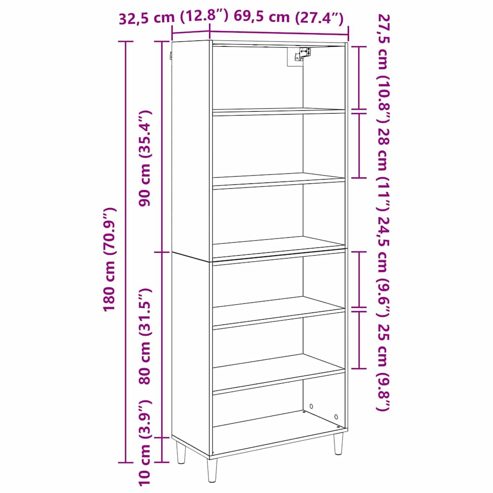 vidaXL Highboard Artisan-Eiche 69,5 x 32,5 x 180 cm Holzwerkstoff