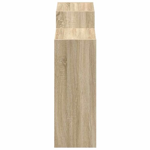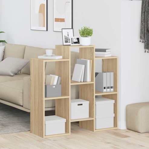 Dieser moderne Sideboard hat klare Linien und wenig Schnickschnack, was ihm einen stilvollen Look verleiht, der gut in moderne Räume passt. Speziell für Wohnzimmer entworfen, ist dieses freistehende Regal eine schicke Lösung, um Bücher, Deko und persönliche Sachen aufzubewahren. Aus Holzwerkstoff gemacht, verbindet es praktisch Eleganz und ist das perfekte Stück für jedes moderne Zuhause, das nach Einfachheit und Nutzen sucht. Holzwerkstoffkonstruktion Der Sideboard besteht aus strapazierfähigem Holzwerkstoff, der für seine Stärke und Haltbarkeit bekannt ist. So bleibt er über Jahre hinweg stabil und bietet eine stylische und robuste Lösung für die tägliche Nutzung. Integriertes Regalsystem Mit seinen praktischen Regalen ermöglicht dieser Sideboard viel Platz für Bücher und Deko und schafft Ordnung. Perfekt für alle, die ein aufgeräumtes Wohnzimmer wollen und dabei alles schnell zur Hand haben. Geräumiges Design Mit viel Stauraum ist dieser Sideboard ideal, um eine Vielzahl von Objekten zu organisieren und zu präsentieren. Genieße die Freiheit, deinen Raum umzugestalten, während alle Dinge gut erreichbar bleiben – und das alles mit einem modernen Look. Funktionale Vielseitigkeit Ob Wohnzimmer oder ein anderer Raum – das zeitgenössische Design dieses Sideboards passt zu vielen Stilen und ist eine praktische Ergänzung für jedes Umfeld. Die Flexibilität macht ihn zum Must-have für alle, die ihre Wohnräume aufwerten möchten. Pflegehinweise Der Zusammenbau geht zu zweit leichter und braucht einen Schraubendreher. Halte die Oberfläche mit einem trockenen Tuch sauber und vermeide aggressive Chemikalien, die dem Material schaden könnten. ** Farbe: Sonoma-Eiche ** Gesamtabmessungen: 90 x 30 x 90 cm (B x T x H) ** Max. Gewicht: 10 kg pro Regalbrett ** Langlebig ** Reichlich Stauraum ** Vielseitiger Einsatz ** Montage erforderlich: Ja ** Lieferumfang: ** 1 x Sideboard