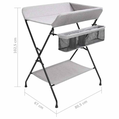 Auf diesem Wickeltisch liegt Ihr Baby beim Wickeln sicher und bequem. Der Wickeltisch ist robust und langlebig. Die erhöhten Seitenwände sorgen dafür, dass das Baby nicht herunterrollt. Die Wickelstation verfügt über Seitenfächer zur Aufbewahrung und einfachem Zugriff auf Babyartikel. Nach dem Wickeln können Sie den Wickeltisch platzsparend zusammenklappen und verstauen, sodass er sich perfekt auch für unterwegs oder für den Einsatz in den eigenen vier Wänden eignet. Darüber hinaus bietet die untere Ablage Platz für Babyzubehör wie Babyöl, zusätzliche Windeln usw. ** Farbe: Hellgrau ** Material: Eisen, Canvas , Leinen ** Abmessungen (aufgeklappt): 80,5 x 67 x 102,5 cm (L x B x H) ** Mit seitlichen Staufächern ** Mit unterer Ablage ** Zusammenklappbar ** Zusammenbau erforderlich: Ja Warnung Lassen Sie das Kind NICHT unbeaufsichtigt. Maximale Belastung: 11 kg. Empfohlenes Alter: von 0 bis 12 Monaten. Erlauben Sie Kindern nicht, auf den Wickeltisch zu klettern oder darauf zu spielen.Warnung Lass das Kind NICHT unbeaufsichtigt. Erlaube Kindern nicht, auf den Wickeltisch zu klettern oder zu spielen. GPSR