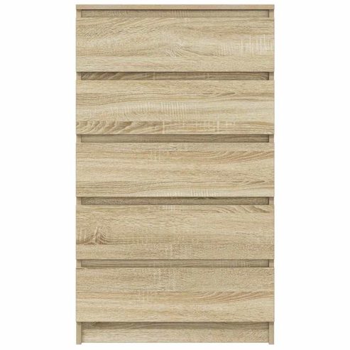 Dieser hübsche Schubladenschrank mit elegantem Charme wird der ästhetische Mittelpunkt Ihres Interieurs sein. Langlebiges Material: Holzwerkstoff ist ein Material von außergewöhnlicher Qualität mit glatter Oberfläche, das sich durch Festigkeit, Stabilität und Feuchtigkeitsbeständigkeit auszeichnet.Viel Stauraum: Der Lagerschrank ist mit 5 Schubladen ausgestattet. In diesen geräumigen Schubladen kannst du verschiedene Sachen ordentlich aufbewahren.Stabile Oberplatte: Die stabile Oberseite eignet sich perfekt zum Aufstellen von Topfpflanzen, Fotorahmen und anderen Dekorationsgegenständen.Einfache Reinigung: Die Schubladenkommode lässt sich einfach mit einem feuchten Tuch reinigen. Achtung:Um das Umkippen zu verhindern, muss dieses Produkt mit der mitgelieferten Wandhalterung gesichert werden. Hinweis:Jedes Produkt wird mit einer Montageanleitung in der Verpackung für eine einfache Montage geliefert. ** Farbe: Sonoma-Eiche ** Material: Holzwerkstoff ** Abmessungen: 60 x 36 x 103 cm (L x B x H)