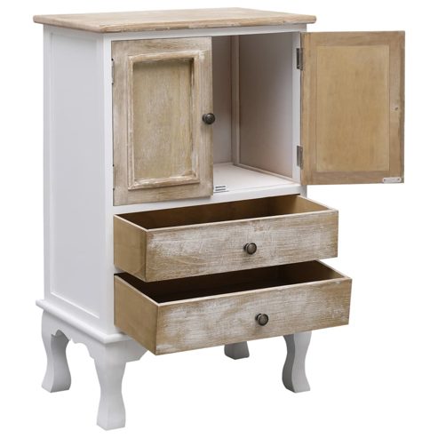 Mit seinem stilvollen Look und seiner praktischen Nützlichkeit ist dieses Sideboard aus Holz das ideale Aufbewahrungsmöbel in deinem Zuhause! Diese Anrichte besteht aus hochwertigem Paulownia- und Pappelholz und robuster MDF-Platte; dadurch ist sie äußerst robust und langlebig. Die Kommode mit 2 Schubladen und 2 Türen bietet ausreichend Stauraum für verschiedene Gegenstände wie Schlüssel, Notizblöcke, Bücher, Zeitschriften, Akten, Sammlerstücke und andere wichtige Dinge. Werte deine Inneneinrichtung mit diesem modernen Schubladenschrank auf! ** Farbe: Weiß ** Material: Paulownie und Pappelholz ** Abmessungen: 50 x 30 x 80 cm (B x T x H) ** Mit 2 Schubladen und 2 Türen ** Max. Belastbarkeit (gesamt): 75 kg ** Max. Tragfähigkeit der Schublade (jeweils): 2,5 kg ** ACHTUNG: Um ein Umkippen zu vermeiden, muss es mit der mitgelieferten Halterung an der Wand gesichert werden. Legal Documents: Weitere Informationen, wie Sie Ihre Möbel vor dem Umkippen schützen können, finden Sie hier
