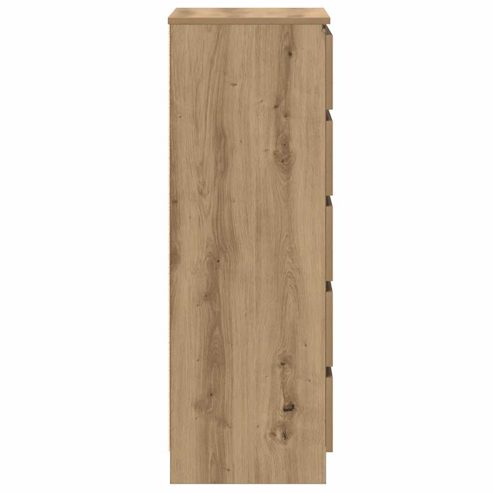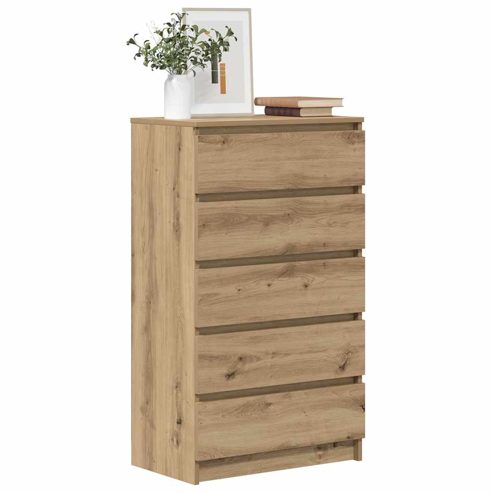 Auf der Suche nach einem stilvollen Schubladenschrank? Dieses gut gestaltete Schubladenschrank verleiht deiner Einrichtung eine elegante Note! Starkes und langlebiges Material: Holzwerkstoff ist ein langlebiges und robustes Material mit einer glatten Oberfläche, das gegen Feuchtigkeit, Verformung und Rissbildung beständig ist, wodurch es eine zuverlässigen Wahl für die Herstellung von Möbeln ist.Viel Stauraum: Mit 5 großzügigen Schubladen versehen, bietet diese Kommode reichlich Stauraum, um verschiedene Alltagssachen ordentlich und griffbereit aufzubewahren.Stabile Oberplatte: Die stabile Oberseite eignet sich perfekt zum Aufstellen von Topfpflanzen, Fotorahmen und anderen Dekorationsgegenständen.Pflegeleicht: Dank ihrer glatten Oberfläche lässt sich die Kommode mit einem feuchten Tuch leicht reinigen und erfordert wenig Pflege. Achtung:Um ein Umkippen zu vermeiden, sollte dieses Produkt mit der mitgelieferten Wandhalterung gesichert werden. ** Farbe: Artisan-Eiche ** Material: Holzwerkstoff ** Abmessungen: 60 x 36 x 103 cm (B x T x H) ** Zusammenbau erforderlich: Ja Legal Documents: Weitere Informationen, wie Sie Ihre Möbel vor dem Umkippen schützen können, finden Sie hier