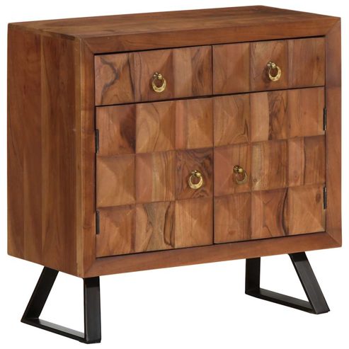 Diese Schubladenkommode besticht durch seinen Retro-Stil, der ihn zu einer großartigen Ergänzung Ihrer Raumausstattung macht. Robust und stabil: Akazienholz ist für seine Festigkeit und Haltbarkeit bekannt. Seine vielfältige Farbe und seine einzigartige Maserung sorgen für eine attraktive Optik. Dank seiner ausgezeichneten Stabilität und Witterungsbeständigkeit eignet es sich ideal für die Herstellung von Innen- und Außenmöbeln.Praktische Griffe: Die Schubladenkommode ist mit schönen ergonomischen, Griffen versehen, die das Öffnen und Schließen erleichtern und gleichzeitig zu ihrer ansprechenden Optik beitragen.Reichlich Stauraum: Der Holzschrank bietet reichlich Stauraum, um Essgeschirr und andere Haushaltssachen ordentlich und griffbereit aufzubewahren.Praktische Tür: Dank der Tür lassen sich deine Sachen ordentlich, geschützt und außer Sicht aufbewahren.Metallfüße: Die Metallfüße verleihen ihm eine angenehme Optik und sorgen gleichzeitig für Stabilität. Achtung:Um ein Umkippen zu vermeiden, sollte dieses Produkt mit der mitgelieferten Wandhalterung gesichert werden. Gut zu wissen:Jedes Stück ist ein Unikat, das in Farbe und Maserung variiert. Die Lieferung erfolgt in zufälliger Reihenfolge, wodurch die Exklusivität und Individualität deines Produkts gewährleistet wird. ** Farbe: Honigbraun ** Material: Massives Akazienholz mit honigfarbenem Finish, Eisen ** Abmessungen: 70 x 35 x 70 cm (B x T x H) ** Max. Traglast: 56 kg ** Beinhaltet 2 Schubladen ** Zusammenbau erforderlich: Ja Legal Documents: Weitere Informationen, wie Sie Ihre Möbel vor dem Umkippen schützen können, finden Sie hier