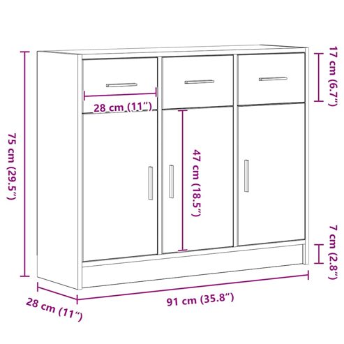 vidaXL Sideboard Schwarze Eiche 91x28x75 cm Holzwerkstoff