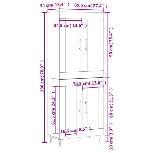 vidaXL Highboard Grau Sonoma 69,5x34x180 cm Holzwerkstoff