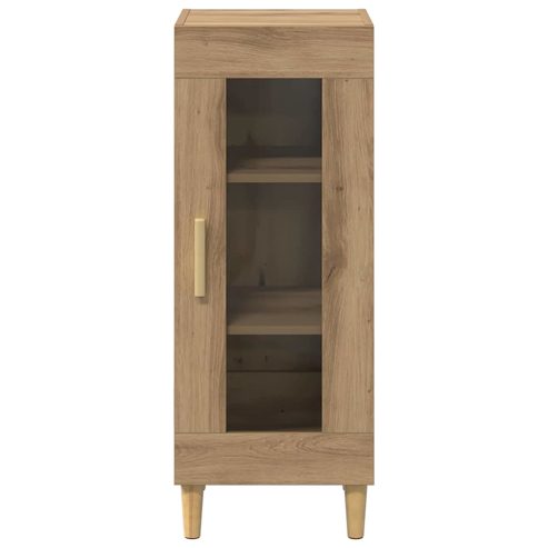 Dieses moderne Sideboard hat ein schlankes, zeitgemäßes Design, ideal um deinen Wohn- oder Essbereich zu organisieren. Aus Holzwerkstoff gefertigt, ist es sowohl stylisch als auch praktisch und bietet genug Platz für deine Sachen, während es sich harmonisch in jede Einrichtung einfügt. Hergestellt aus Holzwerkstoff: Dieses Sideboard ist aus robustem Holzwerkstoff gefertigt, der für seinen Langlebigkeit bekannt ist. Das Material sorgt dafür, dass es stabil bleibt und lange hält. Glastüren: Die Glastüren machen deine Aufbewahrung nicht nur praktisch, sondern sehen auch super aus und bringen Eleganz in jeden Raum. Effiziente Aufbewahrungslösung: Mit viel Stauraum bietet dieses Möbelstück einen praktischen Platz, um alles ordentlich zu verstauen – von Geschirr bis Bücher. Post-Bein-Design: Die stabilen Beine halten das Sideboard im Gleichgewicht und passen sich gut an verschiedene Böden an. Einfache Montage erforderlich: Jede Montage braucht nur einen Schraubendreher, die Details sind beigelegt für eine einfache Installation zu Hause. ** Farbe: Artisan-eiche ** Material: Holzwerkstoff ** Gesamtabmessungen: 34.5 x 32.5 x 90 cm (L x B x H) ** Mit 1 glastür tür ** Maximales gewicht: 60.0 kg ** Montage erforderlich: Ja