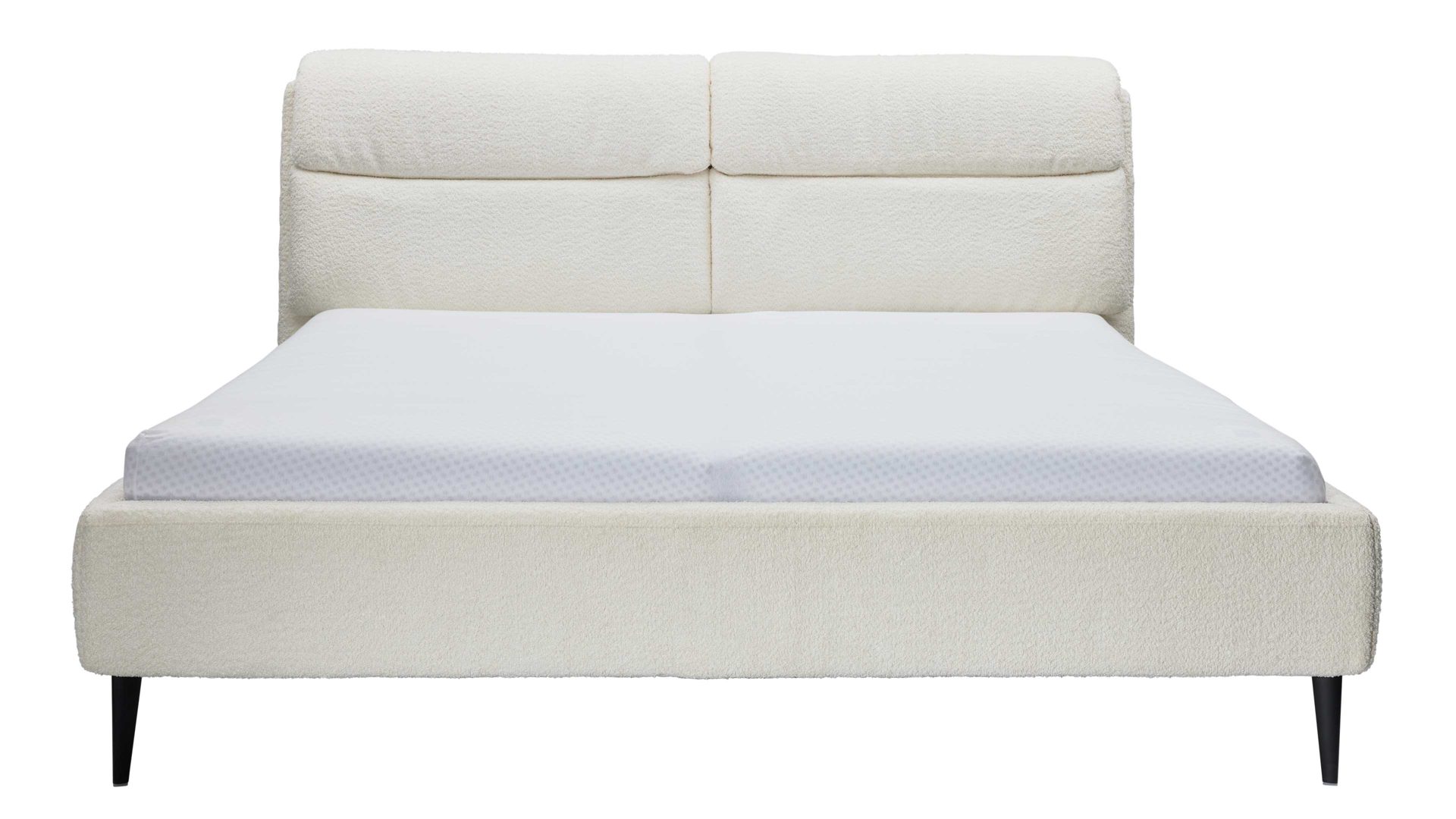 Die kubisch gepolsterten Bettseiten mit anthrazitfarben lackierter Innenseite ergänzen das klare Design und harmonieren perfekt mit den dunklen Metallfüßen. Für noch mehr Individualität kannst du aus vier weiteren Fußvarianten in zwei Höhen wählen.