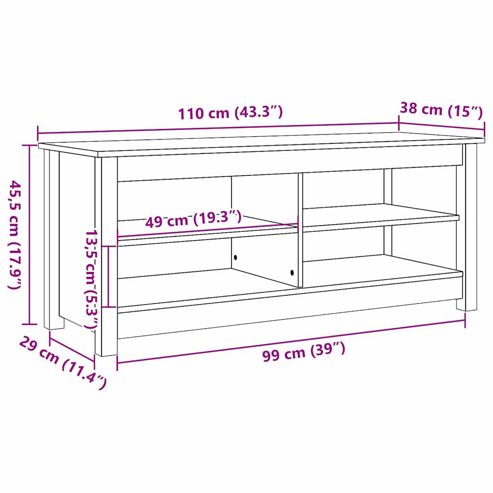 vidaXL Schuhbank Wachsbraun 110 x 38 x 45.5 cm Massivholz Kiefer