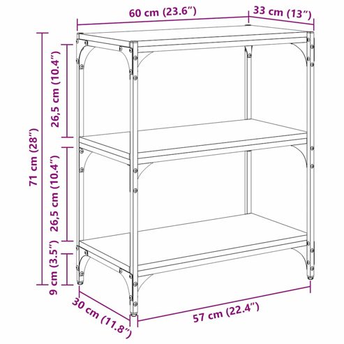 vidaXL Bücherregal Schwarz Eichen-Optik 60 x 33 x 70,5 cm