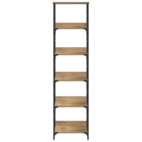 Dieses moderne Bücherregal verbindet Stil und Funktion auf perfekte Weise und passt in jedes Zuhause. Das klare Design und die schlichte Eleganz schaffen eine einladende Atmosphäre. Ob vollgepackt mit spannenden Romanen oder minimalistischen Deko-Elementen, dieses Regal sorgt für eine stimmungsvolle Umgebung und verleiht jedem Raum einen charmanten Touch, egal ob du ein Bücherwurm oder ein Einrichtungsfan bist. Oberfläche aus Holzwerkstoff Die Regaloberfläche besteht aus stabilen Holzwerkstoffen, die abriebfest sind und nicht so schnell abnutzen. Das macht es langlebig und sieht gleichzeitig gut aus. Modernes freistehendes Design Das Regal ist freistehend und kann überall aufgestellt werden, sei es im Wohnzimmer, Schlafzimmer oder Büro. Es passt perfekt zu verschiedenen Einrichtungsstilen und sieht dabei toll aus. Robuster Stahlrahmen Unter dem Regal sorgt ein stabiler Stahlrahmen für die nötige Stabilität. Die Metallbeine halten auch bei schweren Lasten gut, ob auf Teppich oder Holz. Effiziente Raumnutzung Dieses Regal nutzt den vertikalen Platz optimal aus. Es hat großzügige Regale, die viel Stauraum für Bücher, Deko und Bürobedarf bieten, und ist damit eine große Hilfe in jedem organisierten Zuhause. Einfache Wartung Es ist leicht, das Regal sauber zu halten. Wisch einfach mit einem trockenen Tuch drüber. Um sicherzugehen, dass es stehen bleibt, befestige es mit den geeigneten Vorrichtungen an der Wand. ** Farbe: Artisan-Eiche ** Material: Holzwerkstoff ** Gesamtabmessungen: 50 x 33 x 188,5 cm (L x B x H) ** mit 5 Regalen ** Anzahl Staufächer: 5 ** Reichlich Stauraum ** Langlebig ** Max. Gewicht: 60 kg ** Montage erforderlich: Ja