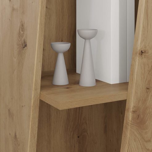 Dieses moderne Seitenregal ist stylish und funktional zugleich. Es hilft dir, verschiedene Räume ordentlich zu halten und findet seinen Platz in jedem Zimmer – egal ob Wohnzimmer, Schlafzimmer oder Badezimmer – und sieht dabei toll aus, dank der Holzwerkstoff-Oberfläche. Das minimalistische Design bringt elegante, klare Linien mit, die perfekt zu urbanen und modernen Wohnungen passen und dabei deine wichtigsten Sachen griffbereit halten. Die glatte Textur macht es noch ansprechender und zu einer tollen Ergänzung für deine Wohnung. Holzwerkstoff-Konstruktion: Top Qualität mit langlebigem Holzwerkstoff, der wirklich lange hält. Die dichte Struktur sorgt dafür, dass es moderner Einrichtung perfekt entspricht. Dieses Material bleibt über die Zeit stabil und behält seine schlanken Linien ohne Verformungen. Freistehendes Regaldesign: Du kannst dieses Regal überall im Haus hinstellen – ob als Raumteiler oder an der Wand, es bleibt stabil und bietet dir viele Möglichkeiten, wie du deinen Raum gestalten möchtest. Eine großartige Lösung, um kleinen Wohnungen mehr Platz zu geben. Schützende PVC-Pads: Die PVC-Pads schützen deinen Boden vor Kratzern und Schäden. Sie sind wichtig, wenn du empfindliche Böden hast und sorgen dafür, dass das Regal stabil steht und deine Oberflächen schont. Diese Pads kombinieren Funktionalität und Pflegeleichtigkeit für dein Zuhause. Multifunktional: Egal ob Wohnzimmer, Schlafzimmer, Küche oder Büro, das Regal erfüllt alle deine Aufbewahrungsbedürfnisse. Es bietet Platz, um Dekoration zu zeigen oder Alltagsgegenstände zu verstauen und sieht dabei in jedem Raum toll aus. Praktisch und stylisch für jede Art von Einrichtung. Einfache Montage: Die Montage ist easy und benötigt nur einen Schraubendreher. Um sicher zu sein, sollte es an einer Wand gesichert werden, das macht es sicher und stabil. Ideal für alle Nutzer, egal auf welchem Level – Installation ohne Stress! ** Farbe: Artisan-Eiche ** Material: Holzwerkstoff ** Gesamtabmessungen: 33 x 32 x 100,5 cm (L x B x H) ** mit Freistehende Regale ** Langlebig ** Mit PVC Möbel Pads ** Max. Gewicht: 15 kg pro Regal ** Montage erforderlich: Ja