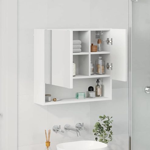 vidaXL Spiegelschrank mit Regal Weiß 59 x 17 x 55 cm Holzwerkstoff