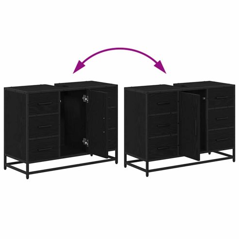 vidaXL Badezimmer Waschbecken Schrank mit Tür Schwarz Eichen-Optik