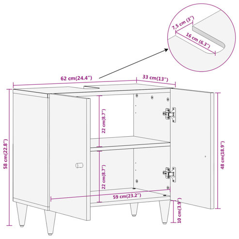 vidaXL Waschbeckenunterschrank 62x33x58 cm Massivholz Mango