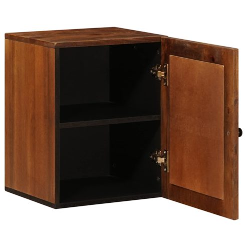 Dieser moderne hängende Badezimmer-Schrank ist eine super schicke Lösung, um dein Bad ordentlich zu halten. Mit seinem zeitgenössischen Look, klaren Linien und schlichter Eleganz wertet er jedes Badezimmer auf. Die warmen Braun- und minimalistischen Akzente fügt sich der Schrank nahtlos in moderne Wohnungen ein und bietet dabei Funktionalität und visuelle Anziehungskraft. Er hängt auf Augenhöhe, damit du leicht an alles rankommst, während er gleichzeitig den Platz optimiert und den Stil bewahrt. Massivholz Mango: Der Schrank hat eine coole Konstruktion aus massivem Mangoholz. Dieses Holz ist super stark und langlebig und bringt die natürliche Holzmaserung und die schön warmen Brauntöne mit, die deinem Bad Eleganz verleihen. Moderne Metalldetails: Neben dem Holz gibt es schicke Beine aus Metall. Diese in Schwarz gehaltenen Beine sorgen für Stabilität und geben dem Ganzen einen modernen Kick – perfekt für ein stilvolles Badezimmer. Praktisches Design: Das Design setzt auf Funktionalität und bietet viel Stauraum, der hinter schicken Türen versteckt ist. Das Layout sorgt dafür, dass alles organisiert bleibt, während es gleichzeitig aufgeräumt aussieht – ideal für Toilettenartikel, Handtücher und alle anderen Badessentials. Platzsparende Lösung: Der hängende Wandschrank ist perfekt für kleine Bäder. Er bringt die Aufbewahrung nach oben an die Wand, sodass mehr Platz für andere Dinge bleibt und dein Badezimmer offener und einladender wirkt. Einfache Pflege: Um den Schrank in top Zustand zu halten, wische einfach die Oberflächen mit einem feuchten Tuch ab. So bleibt er hübsch und die Materialien werden geschützt. Dieser pflegeleichte Prozess sorgt dafür, dass der Schrank lange Zeit ein stylisches Element in deinem Badezimmer bleibt. ** Farbe: Walnuss ** Gesamtabmessungen: 38 x 33 x 48 cm (L x B x H) ** mit 1 Tür ** Nur für den Innenbereich ** Lieferumfang: ** 1 x Badezimmer Hängeschrank ** Montage erforderlich: Ja