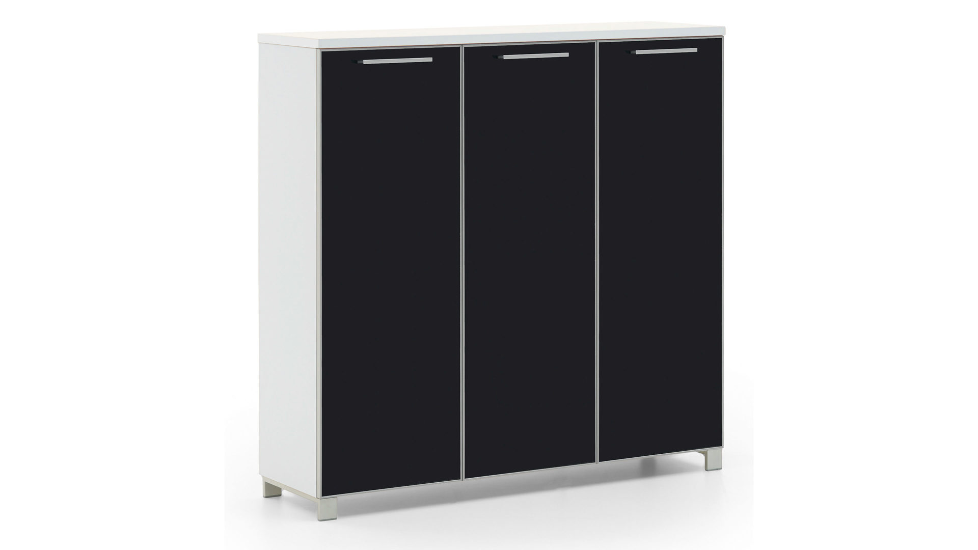 Hinter den drei Türen befinden sich zwei feste Böden sowie acht praktisch verstellbare Einlegeböden aus Holz. Letztere geben Ihnen die Möglichkeit, die Höhen der einzelnen Bereiche gezielt an die jeweiligen Schuhe anzupassen. Insgesamt bietet Ihnen die Schuhkommode Platz für ca. 36 Paar Schuhe. Die Maße des Schranks belaufen sich auf ca. 126 x 126 x 37 cm (BxHxT).
