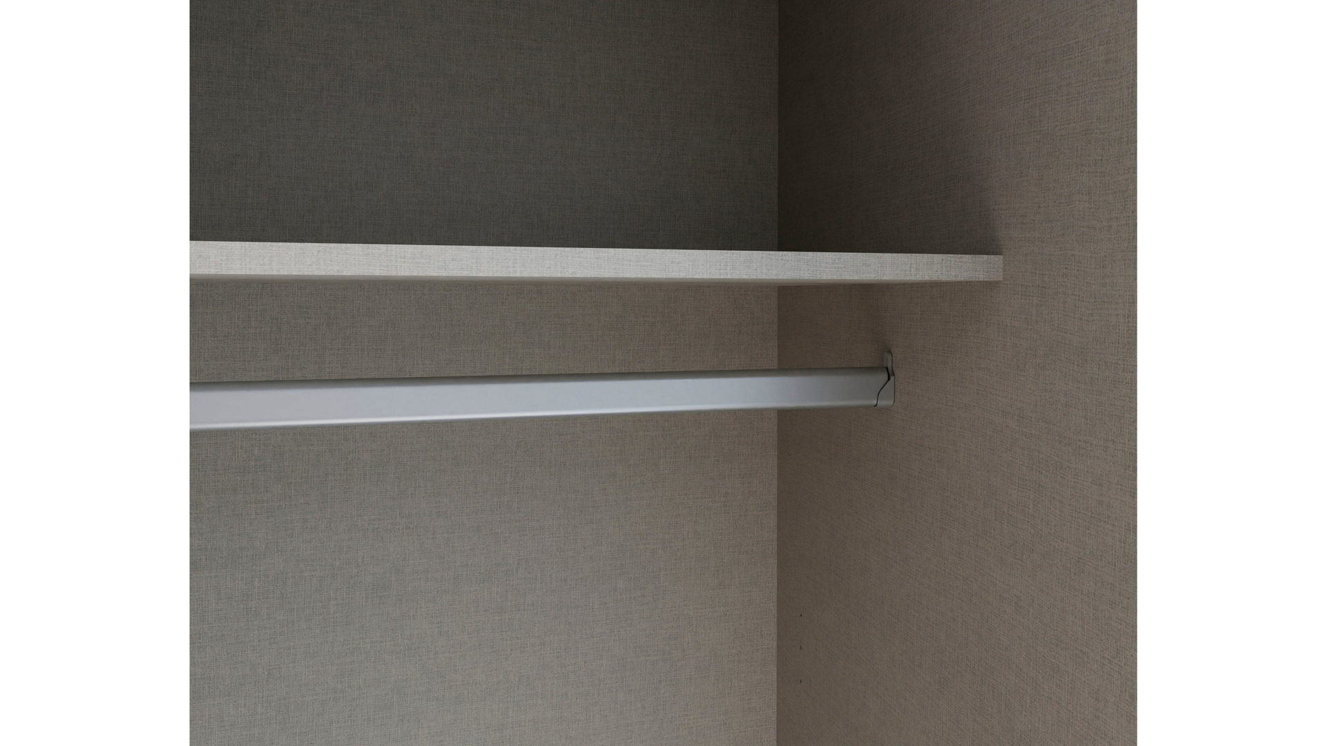 dahinter je ein Einlegeboden und eine Metall-Kleiderstange