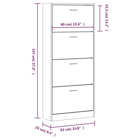 Dieser Schuhschrank, in einem modernen und stilvollen Design, ist ein hervorragendes Möbelstück für die ordentliche und übersichtliche Aufbewahrung deiner Schuhe. Der Schuhe-Organizer eignet sich für den Eingangsbereich, Flur, Wohnzimmer und für jeden anderen Ort, an dem du es gerne haben möchtest. Langlebiges Material: Holzwerkstoff ist ein Material von außergewöhnlicher Qualität mit glatter Oberfläche, das sich durch Festigkeit, Stabilität und Feuchtigkeitsbeständigkeit auszeichnet.Reichlich Stauraum: Dieser Schuhkipper verfügt über 4 Klappen und bietet ausreichend Platz, um deine Schuhe griffbereit und gut organisiert zu halten.Kippbares Design: Dank der Kippfächer bietet dir dieser leicht zu öffnende und schließende Schuhschrank einfachen Zugriff auf deine Schuhe. Hinweis:Jedes Produkt wird mit einer Montageanleitung in der Verpackung für eine einfache Montage geliefert. Achtung:Um ein Umkippen zu verhindern, muss dieses Produkt mit der mitgelieferten Wandhalterung gesichert werden. ** Farbe: Betongrau ** Material: Holzwerkstoff ** Abmessungen: 63 x 24 x 147 cm (B x T x H) ** Größe der Schublade: 60 x 33,5 cm (B x H) Legal Documents: Weitere Informationen, wie Sie Ihre Möbel vor dem Umkippen schützen können, finden Sie hier