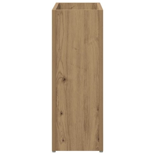 Dieser hölzerne Schirmständer vereint auf elegante Weise Funktionalität und Stil und ist somit eine unverzichtbare Ergänzung für Ihren Flur oder Ihre Diele. Er kombiniert modernes Design mit seiner glatten, rechteckigen Form und bietet Platz für Regenschirme und weitere Haushaltsgegenstände. Stellen Sie sich vor, wie dieser Ständer die Ästhetik Ihres Zuhauses aufwertet, indem seine schlanke Form mühelos moderne Innenräume ergänzt und gleichzeitig mit seinen effizienten Aufbewahrungsmöglichkeiten für Ordnung sorgt. Holzwerkstoffbau Dieser robuste Schirmständer ist aus Verbundholz gefertigt und gewährleistet eine langlebige und zuverlässige Nutzung, die dem täglichen Gebrauch standhält. Die Materialwahl sorgt für eine ansprechende Optik und Textur, die sich ideal in moderne Wohnräume einfügt. Rechteckige Form Mit seinem schlanken Design passt der Ständer perfekt in schmale Flure oder Garderoben. Die Form erleichtert das Platzieren an Wänden und macht ihn ideal für kleine Räume, ohne wertvollen Stauraum einzubüßen. Vielseitige Aufbewahrung Neben Regenschirmen bietet der Ständer Platz für Schals, Handschuhe und kleine Haushaltsartikel, was ihn zur optimalen Lösung für einen aufgeräumten Eingangsbereich macht. Leicht zu reinigende Oberfläche Dank seiner glatten Oberfläche, die sich schnell mit einem feuchten Tuch abwischen lässt, ist es einfach, das makellose Aussehen des Ständers zu erhalten. Vermeiden Sie aggressive Chemikalien oder schrubben Sie nicht, damit das elegante, saubere Aussehen auch bei täglichem Gebrauch erhalten bleibt. Funktioneller, moderner Stil Das minimalistische Design mit klaren Linien steigert die Ästhetik und bietet eine praktische Lösung, die Funktionalität und Eleganz harmonisch vereint – passend für jedes moderne Zuhause. ** Farbe: Artisan-Eiche ** Material: Holzwerkstoff ** Gesamtabmessungen: 40 x 20 x 55,5 cm (L x B x H) ** Gewicht: 7,6 kg ** Langlebig ** Vielseitige Anwendung ** Einfache Reinigung der Oberfläche ** Rahmenmaterial: Holzwerkstoff ** Max. Gewicht: 40 kg ** Nur für den Innenbereich ** Lieferumfang: ** 1 x Regenschirmständer ** Montage erforderlich: Ja
