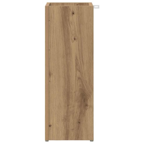 Dieser hölzerne Schirmständer vereint auf elegante Weise Funktionalität und Stil und ist somit eine unverzichtbare Ergänzung für Ihren Flur oder Ihre Diele. Er kombiniert modernes Design mit seiner glatten, rechteckigen Form und bietet Platz für Regenschirme und weitere Haushaltsgegenstände. Stellen Sie sich vor, wie dieser Ständer die Ästhetik Ihres Zuhauses aufwertet, indem seine schlanke Form mühelos moderne Innenräume ergänzt und gleichzeitig mit seinen effizienten Aufbewahrungsmöglichkeiten für Ordnung sorgt. Holzwerkstoffbau Dieser robuste Schirmständer ist aus Verbundholz gefertigt und gewährleistet eine langlebige und zuverlässige Nutzung, die dem täglichen Gebrauch standhält. Die Materialwahl sorgt für eine ansprechende Optik und Textur, die sich ideal in moderne Wohnräume einfügt. Rechteckige Form Mit seinem schlanken Design passt der Ständer perfekt in schmale Flure oder Garderoben. Die Form erleichtert das Platzieren an Wänden und macht ihn ideal für kleine Räume, ohne wertvollen Stauraum einzubüßen. Vielseitige Aufbewahrung Neben Regenschirmen bietet der Ständer Platz für Schals, Handschuhe und kleine Haushaltsartikel, was ihn zur optimalen Lösung für einen aufgeräumten Eingangsbereich macht. Leicht zu reinigende Oberfläche Dank seiner glatten Oberfläche, die sich schnell mit einem feuchten Tuch abwischen lässt, ist es einfach, das makellose Aussehen des Ständers zu erhalten. Vermeiden Sie aggressive Chemikalien oder schrubben Sie nicht, damit das elegante, saubere Aussehen auch bei täglichem Gebrauch erhalten bleibt. Funktioneller, moderner Stil Das minimalistische Design mit klaren Linien steigert die Ästhetik und bietet eine praktische Lösung, die Funktionalität und Eleganz harmonisch vereint – passend für jedes moderne Zuhause. ** Farbe: Artisan-Eiche ** Material: Holzwerkstoff ** Gesamtabmessungen: 20 x 20 x 55,5 cm (L x B x H) ** Gewicht: 4,8 kg ** Langlebig ** Vielseitige Anwendung ** Einfache Reinigung der Oberfläche ** Rahmenmaterial: Holzwerkstoff ** Max. Gewicht: 40 kg ** Nur für den Innenbereich ** Lieferumfang: ** 1 x Regenschirmständer ** Montage erforderlich: Ja