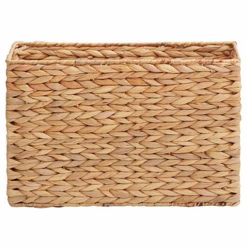 Diese Haushaltsmagazinkörbe bringen den rustikalen Charme auf den Punkt und passen perfekt in dein Wohnzimmer, Schlafzimmer, Büro oder Arbeitszimmer. Hergestellt aus natürlicher Wasserhyazinthe haben sie eine strukturierte Oberfläche, die Funktionalität mit einer tollen Optik kombiniert. Ihre rechteckige Form ist praktisch und sorgt dafür, dass du deine Sachen stilvoll aufbewahren kannst. Materialien: Diese Körbe sind aus echtem Wasserhyazinthe gemacht und bieten ein natürliches, schönes Design mit einer tollen Textur, die deinem Raum mehr Charakter verleiht. Das Material ist robust und sorgt dafür, dass du lange Freude daran hast! Enthaltene Komponenten: Mit einem stabilen Stahlrahmen innen sind diese Körbe leicht, aber dennoch stark. Die Griffe aus dem gleichen Wasserhyazinthe-Material sehen nicht nur gut aus, sondern machen das Tragen auch absolut einfach. Eigenschaften/Funktion/Design: Die Körbe haben tolle Griffe, mit denen du sie easy zwischen Räumen bewegen kannst! Sie sind stark, aber leicht und echt praktisch für alles Mögliche – von Zeitschriften bis zu anderen Sachen – und helfen dir, Ordnung zu halten. Empfohlene Verwendungen: Egal ob im Wohn- oder Bürobereich, diese Körbe passen zu jedem Stil und sind super für Lesematerial im Wohnzimmer, das Organisieren von Kram im Büro oder einfach für mehr Ordnung im Schlafzimmer. Sie fügen sich problemlos in jeden Raum ein und ergänzen deinen Stil. Pflege & Wartung: Die rattanartige Oberfläche braucht fast keine Pflege. Ein bisschen Abstauben von Zeit zu Zeit und das Vermeiden von zu viel Sonne hält sie in einem Top Zustand. Sie sind wetterbeständig und bleiben über Jahre hinweg elegant. ** Farbe: Natur ** Material: Wasserhyazinthe ** Gesamtabmessungen: 39 x 14 x 25 cm (L x B x H) ** Gewicht: 2 kg ** Langlebig ** Leichtes Gewicht ** Eingebauter Griff ** Rahmenmaterial: Stahl ** Nur für den Innenbereich ** Lieferumfang: ** 2 x Zeitschriftenkorb