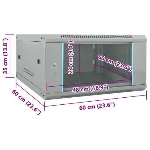 vidaXL Netzwerkschrank mit Speicher Grau 60 x 60 x 35 cm Stahl