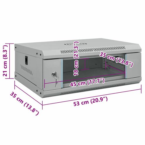 vidaXL Netzwerkschrank mit Speicher Grau 53 x 35 x 21 cm Stahl