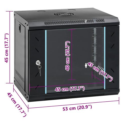 vidaXL Netzwerkschrank mit Speicher Schwarz 53 x 45 x 45 cm Stahl