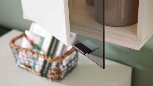 Auf Wunsch stattest du deine Wohnwand mit einer LED-Glasfachbeleuchtung für stimmungsvolle Lichtakzente, einem Wireless Charger für kabelloses Laden oder einer Einbausteckdose Backflip für praktische Stromanschlüsse direkt am Möbel aus. So wird deine Wohnwand nicht nur schön, sondern auch smart.