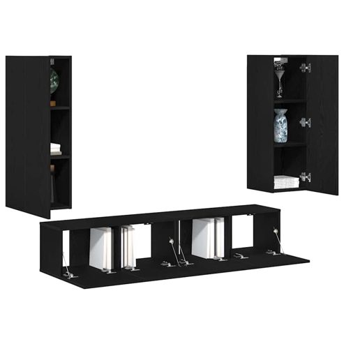 vidaXL 4-teiliges TV-Schrank-Set -Wandmontierte schwarze Eiche aus engineered wood