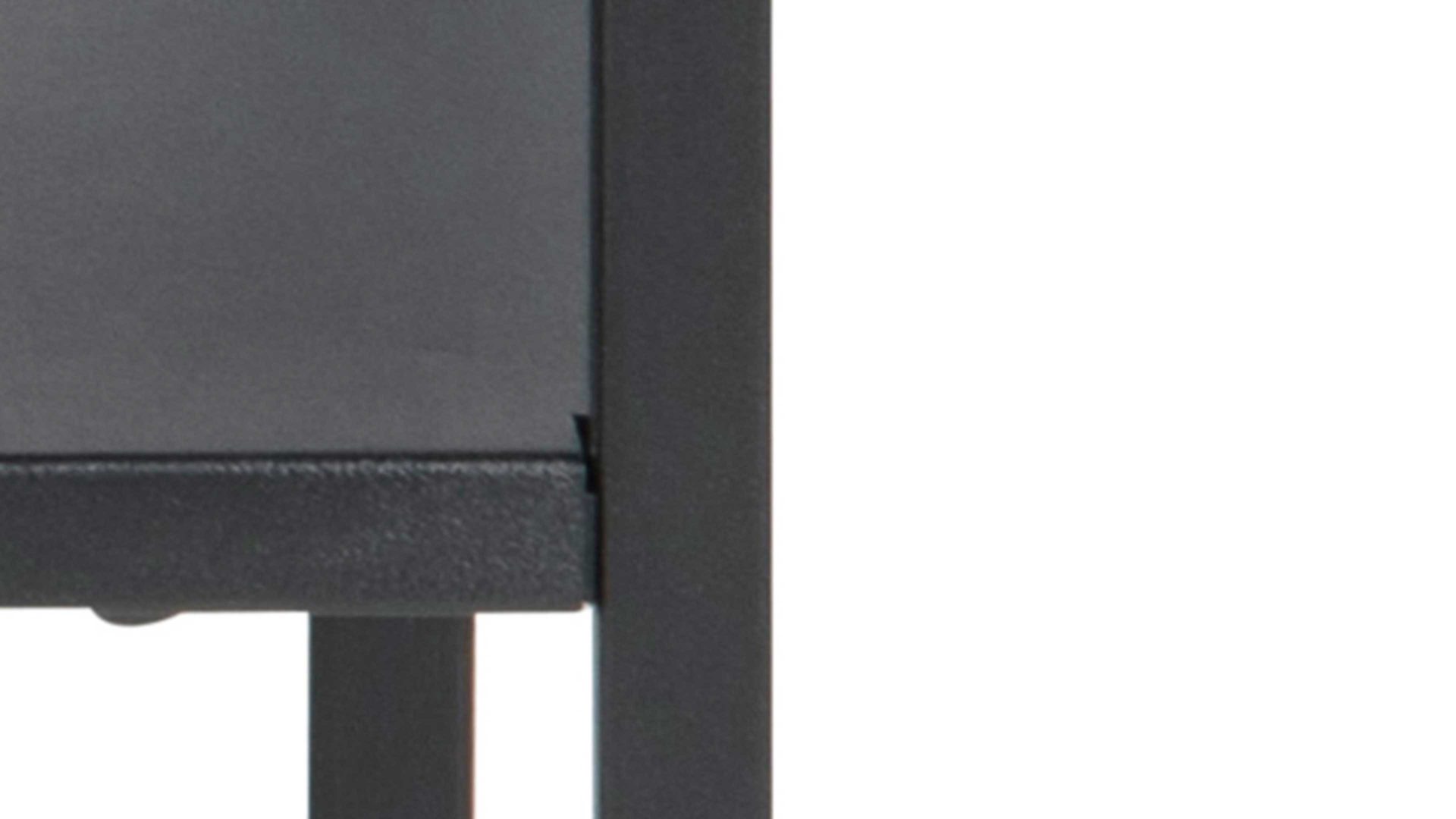 Designt im angesagten Industriestil, bringt dieser Tisch ganz besonderen Charme in Ihre Räume. Er besteht aus mattschwarz pulverbeschichtetem Metall und ist dementsprechend enorm robust und langlebig. Zur außergewöhnlichen Ausstrahlung des Nachttisches trägt auch die raue Oberfläche bei.
