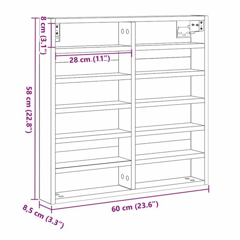 vidaXL Vitrinenschrank Altholz 60 x 8.5 x 58 cm Holzwerkstoff