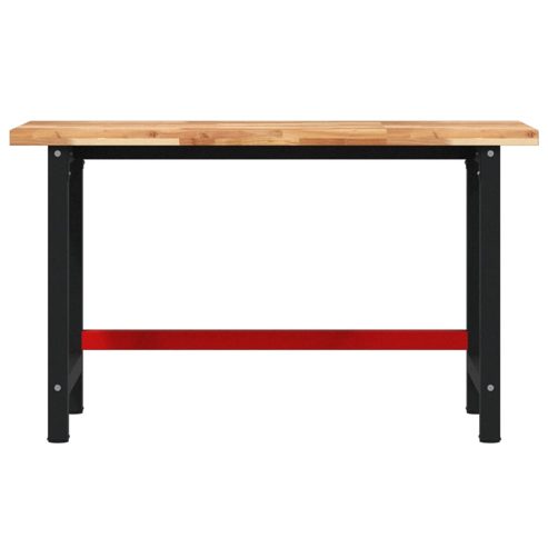 Die Werkbank ist ein großartiger Helfer, wenn du Reparaturarbeiten erledigen oder deine Heimwerker-Träume erfüllen möchtest! Robust und stabil: Akazienholz ist für seine Festigkeit und Haltbarkeit bekannt. Seine vielfältige Farbe und seine einzigartige Maserung sorgen für eine attraktive Optik. Dank seiner ausgezeichneten Stabilität und Witterungsbeständigkeit eignet es sich ideal für die Herstellung von Innen- und Außenmöbeln.Stabiles und haltbares Gestell: Aus pulverbeschichtetem Metall gefertigt, ist das Gestell robust, stabil, langlebig, korrosions- und witterungsbeständig und gewährleistet dadurch eine lange Lebensdauer.Großer Arbeitsbereich: Der Arbeitstisch verfügt über eine geräumige Arbeitsplatte, die Platz für Bohrer, Kabeltrommel und weiteres Werkzeugzubehör bietet.Vielseitig einsetzbar: Mit ihrem schlichten und klaren Design lässt sich die Werkbank je nach Bedarf auch als Arbeitstisch verwenden. Sie ist daher ein praktisches und bequemes Möbelstück. Gut zu wissen:Jedes Stück ist ein Unikat, das in Farbe und Maserung variiert. Die Lieferung erfolgt in zufälliger Reihenfolge, wodurch die Exklusivität und Individualität deines Produkts gewährleistet wird. Achtung:Die Tischplatte ist mit keinen vorgebohrten Löchern versehen und Schrauben sind nicht im Lieferumfang enthalten. Daher müssen die Löcher gebohrt und die Schrauben vor dem Zusammenbau dieses Arbeitstisches erworben werden. ** Gesamtabmessungen: 140 x 60 x 83 cm (L x B x H) ** Zusammenbau erforderlich: Ja ** Tischplatte: ** Material: Massives Akazienholz mit Naturöl-Finish ** Stärke der Arbeitsplatte: 4 cm ** Form: Rechteckig ** Tischbeine: ** Farbe: Schwarz und Rot ** Material: pulverbeschichtetes Metall ** Abmessungen: 120 x 57 x 79 cm (L x B x H) ** Empfohlene Schraubengröße (nicht im Lieferumfang enthalten): 5 x 75 mm (Durchmesser x L), max. 16 Stk. ** Lieferung umfasst: ** 1 x Tischplatte ** 1 x Tischbein