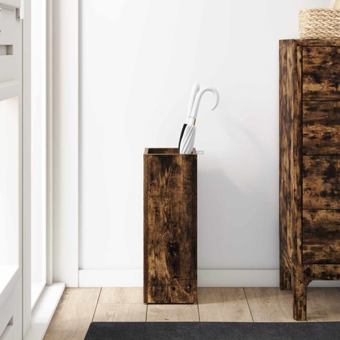 Dieser hölzerne Schirmständer vereint auf elegante Weise Funktionalität und Stil und ist somit eine unverzichtbare Ergänzung für Ihren Flur oder Ihre Diele. Er kombiniert modernes Design mit seiner glatten, rechteckigen Form und bietet Platz für Regenschirme und weitere Haushaltsgegenstände. Stellen Sie sich vor, wie dieser Ständer die Ästhetik Ihres Zuhauses aufwertet, indem seine schlanke Form mühelos moderne Innenräume ergänzt und gleichzeitig mit seinen effizienten Aufbewahrungsmöglichkeiten für Ordnung sorgt. Holzwerkstoffbau Dieser robuste Schirmständer ist aus Verbundholz gefertigt und gewährleistet eine langlebige und zuverlässige Nutzung, die dem täglichen Gebrauch standhält. Die Materialwahl sorgt für eine ansprechende Optik und Textur, die sich ideal in moderne Wohnräume einfügt. Rechteckige Form Mit seinem schlanken Design passt der Ständer perfekt in schmale Flure oder Garderoben. Die Form erleichtert das Platzieren an Wänden und macht ihn ideal für kleine Räume, ohne wertvollen Stauraum einzubüßen. Vielseitige Aufbewahrung Neben Regenschirmen bietet der Ständer Platz für Schals, Handschuhe und kleine Haushaltsartikel, was ihn zur optimalen Lösung für einen aufgeräumten Eingangsbereich macht. Leicht zu reinigende Oberfläche Dank seiner glatten Oberfläche, die sich schnell mit einem feuchten Tuch abwischen lässt, ist es einfach, das makellose Aussehen des Ständers zu erhalten. Vermeiden Sie aggressive Chemikalien oder schrubben Sie nicht, damit das elegante, saubere Aussehen auch bei täglichem Gebrauch erhalten bleibt. Funktioneller, moderner Stil Das minimalistische Design mit klaren Linien steigert die Ästhetik und bietet eine praktische Lösung, die Funktionalität und Eleganz harmonisch vereint – passend für jedes moderne Zuhause. ** Farbe: Geräucherte Eiche ** Material: Holzwerkstoff ** Gesamtabmessungen: 20 x 20 x 55,5 cm (L x B x H) ** Gewicht: 4,8 kg ** Langlebig ** Vielseitige Anwendung ** Einfache Reinigung der Oberfläche ** Rahmenmaterial: Holzwerkstoff ** Max. Gewicht: 40 kg ** Nur für den Innenbereich ** Lieferumfang: ** 1 x Regenschirmständer ** Montage erforderlich: Ja