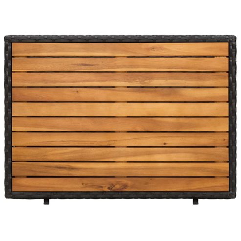 Dieser schicke Rattan-Schrank mit Holzoberfläche bringt modernen Flair in dein Zuhause, drinnen und draußen. Er wurde so gestaltet, dass er perfekt in jeden Garten oder jede Terrasse passt. Mit klaren Linien und durchdachtem Design strahlt er Einfachheit und Stil aus. Die Mischung aus Materialien und Farben macht ihn zu einer vielseitigen Ergänzung für viele Einrichtungsstile und ist die ideale Lösung für Hausbesitzer, die nach praktischen und schicken Möbeln suchen. Massivholz Akazie: Der Schrank hat eine robuste Oberfläche aus massivem Akazienholz, bekannt für seine Stärke und Wetterbeständigkeit. Die natürlichen Holzfarben sorgen für Wärme und Charakter und passen perfekt zu dem modernen Design. Pulverbeschichteter Stahlrahmen: Der stabile pulverbeschichtete Stahlrahmen sorgt für Langlebigkeit. Die geölte Oberfläche erhöht die Ästhetik und schützt vor Feuchtigkeit. Poly-Rattan-Elemente: Regale und Türen aus Poly-Rattan bieten eine coole Kombination aus Textur und Widerstandsfähigkeit, ideal für drinnen und draußen. Geräumiges Design: Mit viel Stauraum kann der Schrank verschiedene Sachen wie Gartenwerkzeuge oder Haushaltsartikel unterbringen. So bleibt alles schön ordentlich. Pflegehinweise: Damit der Schrank lange schön bleibt, gelegentlich mit einem weichen, feuchten Tuch reinigen. Scharfe Chemikalien vermeiden, um die Oberfläche zu schonen. ** Farbe: Schwarz ** Material: Polyester und Roly Ratten ** Gesamtabmessungen: 70 x 50 x 87 cm (L x B x H) ** Gewicht: 12,8 kg ** UV-beständige Materialien ** Langlebig ** Leichtes Gewicht ** Einfach zu pflegen ** mit 3 Regalen ** Rahmenmaterial: Pulverbeschichteter Stahl ** mit 2 Türen ** Für Innen- und Außenbereich ** Lieferumfang: ** 1 x Schrank ** Montage erforderlich: Ja