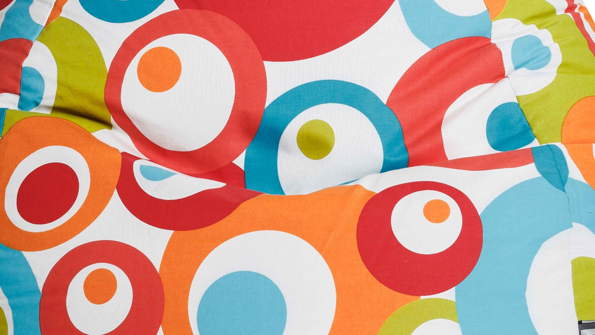 An die bunten 70er-Jahre erinnert dieser farbenfroh gestaltete Sitzsack L von SITTING POINT mit seinem auffälligen Muster. Kreise und Kugeln in verschiedenen, ansprechenden Farben ergeben auf dem weißen Hintergrund ein lebendiges Bild. Das Sitzmöbel ist mit Polystyrol gefüllt und mit einem Baumwollüberzug versehen.