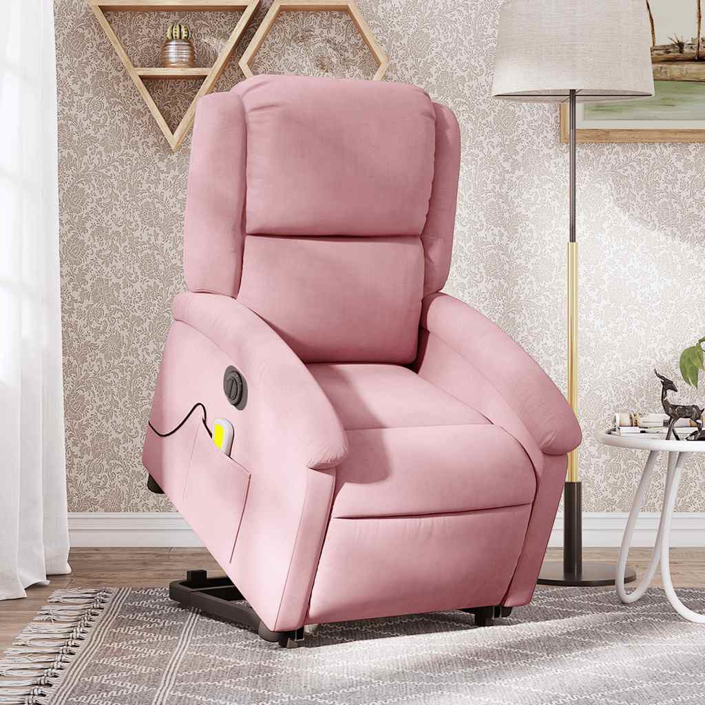 vidaXL Massagesessel mit Aufstehhilfe Elektrisch Rosa Samt