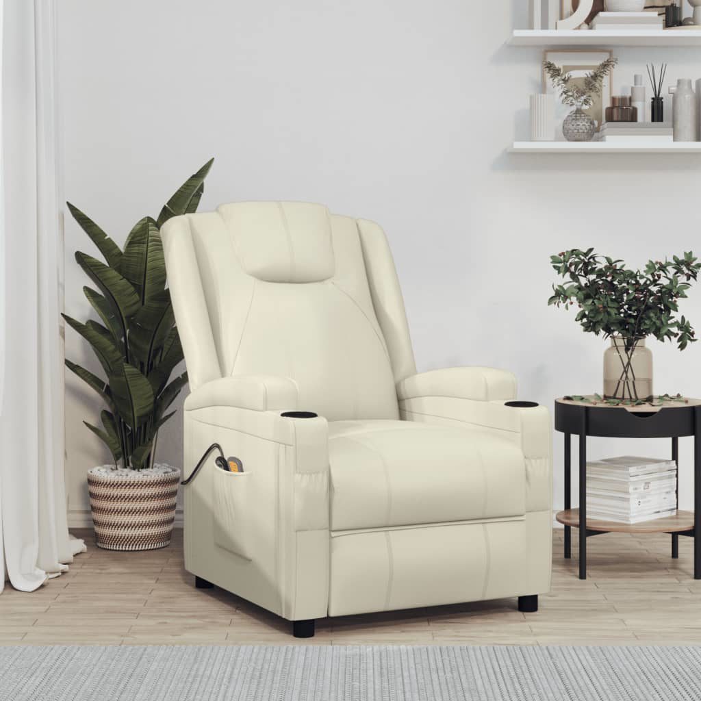 vidaXL Massagesessel Elektrisch Cremeweiß Kunstleder