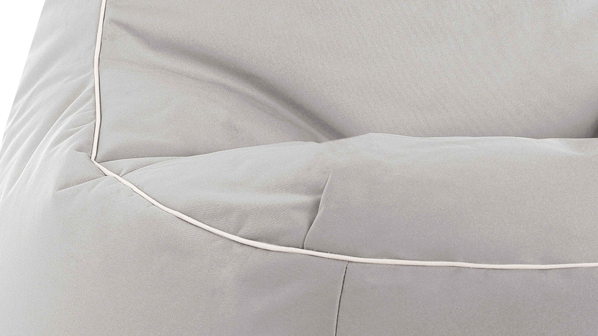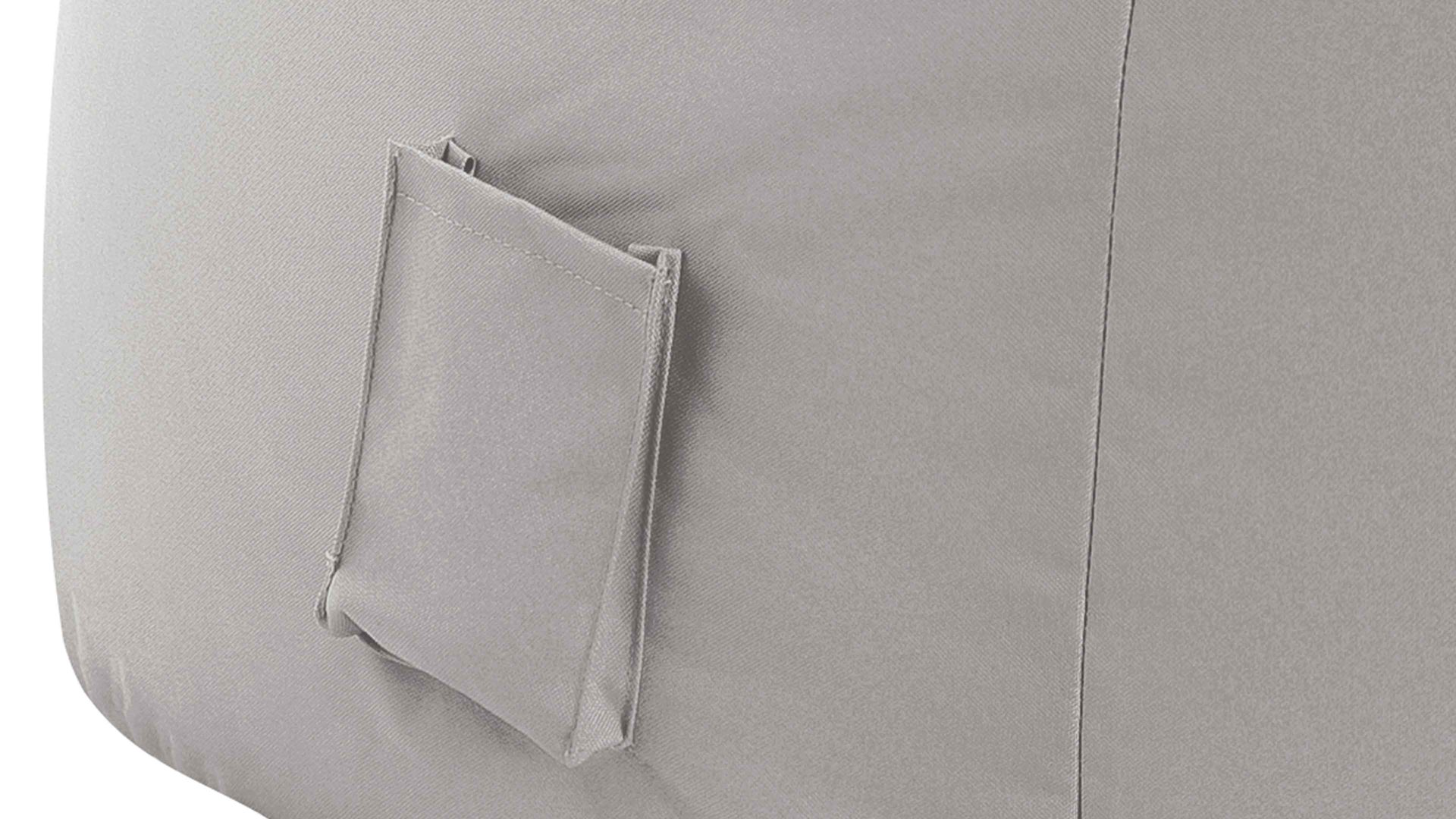 Der komfortable Sitzsack mit Rückenlehne hat eine praktische kleine Tasche im Seitenbereich, das Fassungsvermögen bei ca. 300 Liter. Der gemütliche Sessel hat eine Größe von ca. 95 x 90 x 65 cm (BxHxT) und ist mit einem farblich abgesetzten Keder versehen. Das Füllmaterial aus Polystyrol-Kügelchen passt sich dem Körper optimal an und sorgt für ein hohes Maß an Bequemlichkeit. Vor permanenter starker Sonneneinstrahlung geschützt, bleibt die Farbe des Bezugs lange erhalten.