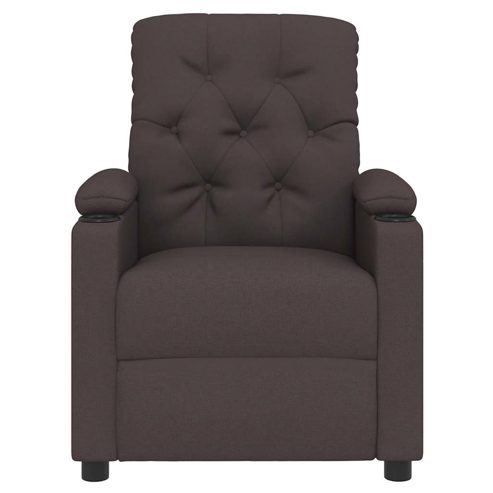 Lehne dich zurück und entspanne dich in diesem äußerst bequemen Massagesessel! Manuelle Liegefunktion: Der Sessel kann manuell in 3 Positionen verstellt werden, so dass die Rückenlehne und der Fußteil je nach Bedarf eingestellt werden können.Vibrationsfunktion: Mit den 6 Massagepunkten kann man eine gezielte Massage genießen. Außerdem ermöglicht die mitgelieferte Handsteuerung die Auswahl verschiedener Massageprogramme. Die Massagefunktion wird über den USB-Anschluss mit Strom betrieben, aber das zugelassene 5V-USB-Netzteil ist nicht im Lieferumfang enthalten.Bequemes Sitzerlebnis: Die dick gepolsterte Sitzfläche, die Rückenlehne und die breiten Armlehnen sorgen für ein behagliches und wohliges Sitzgefühl. Der Bezug aus Stoff hat ein schlichtes und sauberes Aussehen, ist atmungsaktiv und langlebig.Solider und stabiler Rahmen: Der Rahmen aus Holz und Metall sorgt für eine solide Struktur und hohe Stabilität. Dieser TV-Sessel ist bequem und langlebig. ** Farbe: Dunkelbraun ** Material: Stoff (100 % Polyester), Metall ** Gesamtabmessungen: 78,5 x 93 x 96,5 cm (B x T x H) ** Abmessungen in Liegeposition: 78,5 x 136,5 x 80,5 cm (B x T x H) ** Sitzgröße: 53 x 51 cm (B x T) ** Sitzhöhe vom Boden: 45,5 cm ** Armlehnenhöhe vom Boden: 59,5 cm ** Optionen: Massage ** Massagetyp: 6-Punkt-Vibrationsmassage ** Verstellbare Rückenlehne und Fußstütze ** Maximale Tragfähigkeit (pro Sitz ): 110 kg ** Zusammenbau erforderlich: Ja Dieses Produkt wird mit 5 V Gleichstrom betrieben, aber die zertifizierte 5-V-USB-Stromquelle ist nicht im Lieferumfang enthalten. Bitte beachte, dass du nur einen zertifizierten DC 5V-Eingang verwenden darfst. Höhere Spannungen können zu einer Überhitzung führen und das Gerät beschädigen sowie die Gefahr einer Überhitzung und eines Brandes bergen.