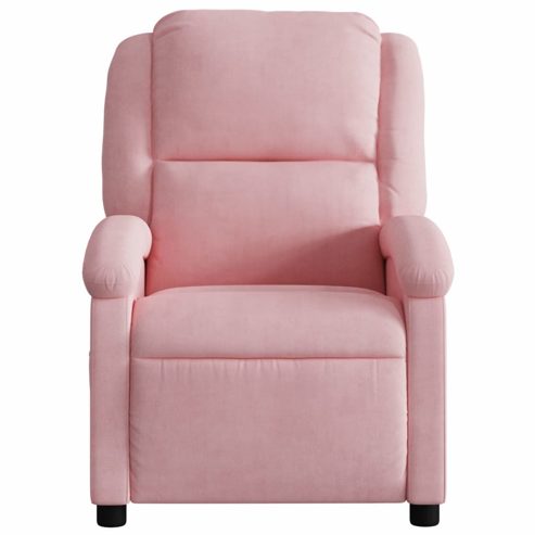 Lehne dich zurück und entspanne dich in diesem äußerst bequemen Massagesessel! Manuelle Liegefunktion: Dieser Ruhesessel lässt sich mittels des seitlichen Griffs verstellen. So kannst du das Fußteil und die Rückenlehne manuell in jede beliebige Position bringen, um die komfortabelste Position zu genießen. Die Rückenlehne lässt sich max. 135 Grad nach hinten verstellen. Durch einfaches Ziehen am Griff wird sie schnell in die ursprüngliche Position zurückgestellt.Vibrationsfunktion: Mit den 6 Massagepunkten kann man eine gezielte Massage genießen. Außerdem ermöglicht die mitgelieferte Handsteuerung die Auswahl verschiedener Massageprogramme. Die Massagefunktion wird über den USB-Anschluss mit Strom betrieben, aber das zugelassene 5V-USB-Netzteil ist nicht im Lieferumfang enthalten.Bequemes Sitzerlebnis: Der dick gepolsterte Sitz, die Rückenlehne und die breiten, mit Samt bezogenen Armlehnen sorgen für ein behagliches und warmes Gefühl, sodass du dich beim Sitzen wie umarmt fühlst. Samt ist ein weicher und bequemer Stoff, der sich angenehm auf der Haut anfühlt.Praktische Seitentasche: Dieser Sessel verfügt über eine Seitentasche, in der du deine Fernbedienung oder andere wichtige Sachen griffbereit aufbewahren kannst.Solider und stabiler Rahmen: Der Rahmen aus Holz und Metall sorgt für eine solide Struktur und hohe Stabilität. Dieser TV-Sessel ist bequem und langlebig. ** Farbe: Rosa ** Material: Samt (100 % Polyester), Metall, Sperrholz ** Füllmaterial: Schaumstoff, PP-Faser ** Abmessungen in Sitzposition: 71 x 86,5 x 99,5 cm (B x T x H) ** Abmessungen in Liegeposition: 71 x 144,5 x 82 cm (B x T x H) ** Sitzbreite: 47 cm ** Sitztiefe: 56,5 cm ** Sitzhöhe vom Boden: 42-45 cm ** Armlehnenhöhe vom Boden: 59 cm ** Optionen: Massage ohne Heizung ** Massagetyp: 6-Punkt-Vibrationsmassage ** Eingangsspannung: DC 5V ** Eingangsstrom: 2A ** Max. Tragfähigkeit: 110 kg ** Zusammenbau erforderlich: Ja Maximal 110 kg pro Sitzplatz.