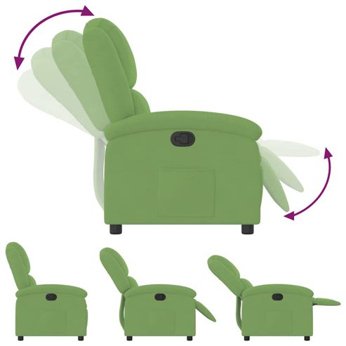 Lehne sich zurück und entspanne sich in diesem äußerst bequemen Relaxsessel! Manuelle Liegefunktion: Dieser Ruhesessel lässt sich mittels des seitlichen Griffs verstellen. So kannst du das Fußteil und die Rückenlehne manuell in jede beliebige Position bringen, um die komfortabelste Position zu genießen. Die Rückenlehne lässt sich max. 135 Grad nach hinten verstellen. Durch einfaches Ziehen am Griff wird sie schnell in die ursprüngliche Position zurückgestellt.Bequemes Sitzerlebnis: Der dick gepolsterte Sitz, die Rückenlehne und die breiten, mit Samt bezogenen Armlehnen sorgen für ein behagliches und warmes Gefühl, sodass du dich beim Sitzen wie umarmt fühlst. Samt ist ein weicher und bequemer Stoff, der sich angenehm auf der Haut anfühlt.Praktische Seitentasche: Dieser Sessel verfügt über eine Seitentasche, in der du wichtige Sachen griffbereit aufbewahren kannst.Solider und stabiler Rahmen: Der Rahmen aus Holz und Metall sorgt für eine solide Struktur und hohe Stabilität. Dieser TV-Sessel ist bequem und langlebig. ** Farbe: Hellgrün ** Material: Samt (100 % Polyester), Metall, Sperrholz ** Füllmaterial: Schaumstoff, PP-Faser ** Abmessungen in Sitzposition: 71 x 86,5 x 99,5 cm (B x T x H) ** Abmessungen in Liegeposition: 71 x 144,5 x 82 cm (B x T x H) ** Sitzbreite: 47 cm ** Sitztiefe: 56,5 cm ** Sitzhöhe vom Boden: 42-45 cm ** Armlehnenhöhe vom Boden: 59 cm ** Max. Tragfähigkeit: 110 kg ** Zusammenbau erforderlich: Ja Maximal 110 kg pro Sitzplatz.