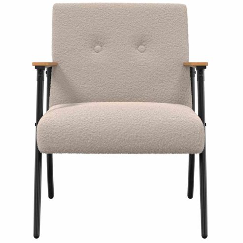 Dieser moderne Sessel bringt Eleganz und Komfort in dein Zuhause und ist perfekt für Wohn- und Schlafzimmer. Mit seinem schlanken Design und den klaren Linien passt er prima in zeitgenössische Einrichtungsstile und bietet ein fluffiges Sitzgefühl mit dem weichen, samtartigen Stoff. Ob zum Relaxen oder Lesen – dieser Sessel ist eine tolle Ergänzung für jedes Zuhause. Kuscheliger Stoff: Der Sessel hat eine angenehme Textur, die das gemütliche Gefühl von lockiger Wolle nachahmt und so den Komfort steigert. Dieser sorgfältig ausgewählte Stoff bringt Luxus ins Spiel und fühlt sich super weich an. Stabile Füße: Aus robustem Stahl, die Beine geben dem Sessel starken Halt und verlängern seine Lebensdauer. Diese Bauteile sorgen für zusätzliche Stabilität und halten auch bei häufigem Sitzen das Gleichgewicht auf unterschiedlichen Böden. Der Rahmen aus Sperrholz und Stahl verbindet Stärke mit Stil. Bequeme Ergonomie: Der Sessel wurde so designt, dass er während längerer Sitzzeiten optimalen Komfort bietet. Die durchdachte Bauweise unterstützt deine Haltung, ideal beim Lesen, Fernsehen oder einfach zum Entspannen nach einem langen Tag. Vielseitig einsetzbar: Der Sessel ist für drinnen gemacht und fügt sich elegant in verschiedene Raumkonzepte ein, sei es im Wohnzimmer oder in einer gemütlichen Ecke deines Schlafzimmers. Seine Flexibilität wertet sowohl das Ambiente als auch die Funktionalität deiner Räume auf. Einfache Pflege: Die Pflege dieses Sessels ist ganz unkompliziert. Für eine regelmäßige Reinigung empfiehlt sich sanfte, trockene Pflege, und es ist besser, scharfe Chemikalien zu vermeiden. Gelegentliche professionelle Reinigung hilft, den Sessel in einem Top-Zustand zu halten. ** Farbe: Hellgrau ** Material: Lockiger wollähnlicher Stoff ** Rahmenmaterial: Sperrholz, Stahl ** Füllmaterial: Schaum ** Beinmaterial: Stahl ** Gesamtabmessungen: 59 x 75 x 78 cm (B x T x H) ** Sitzbreite: 53 cm ** Sitztiefe: 56 cm ** Armlehnenhöhe vom Sitz aus: 16 cm ** Rückenhöhe: 44 cm ** Max. Gewicht: 110 kg pro Sitz ** Ergonomisch ** Montage erforderlich: Ja ** Lieferumfang: ** 1 x Sessel